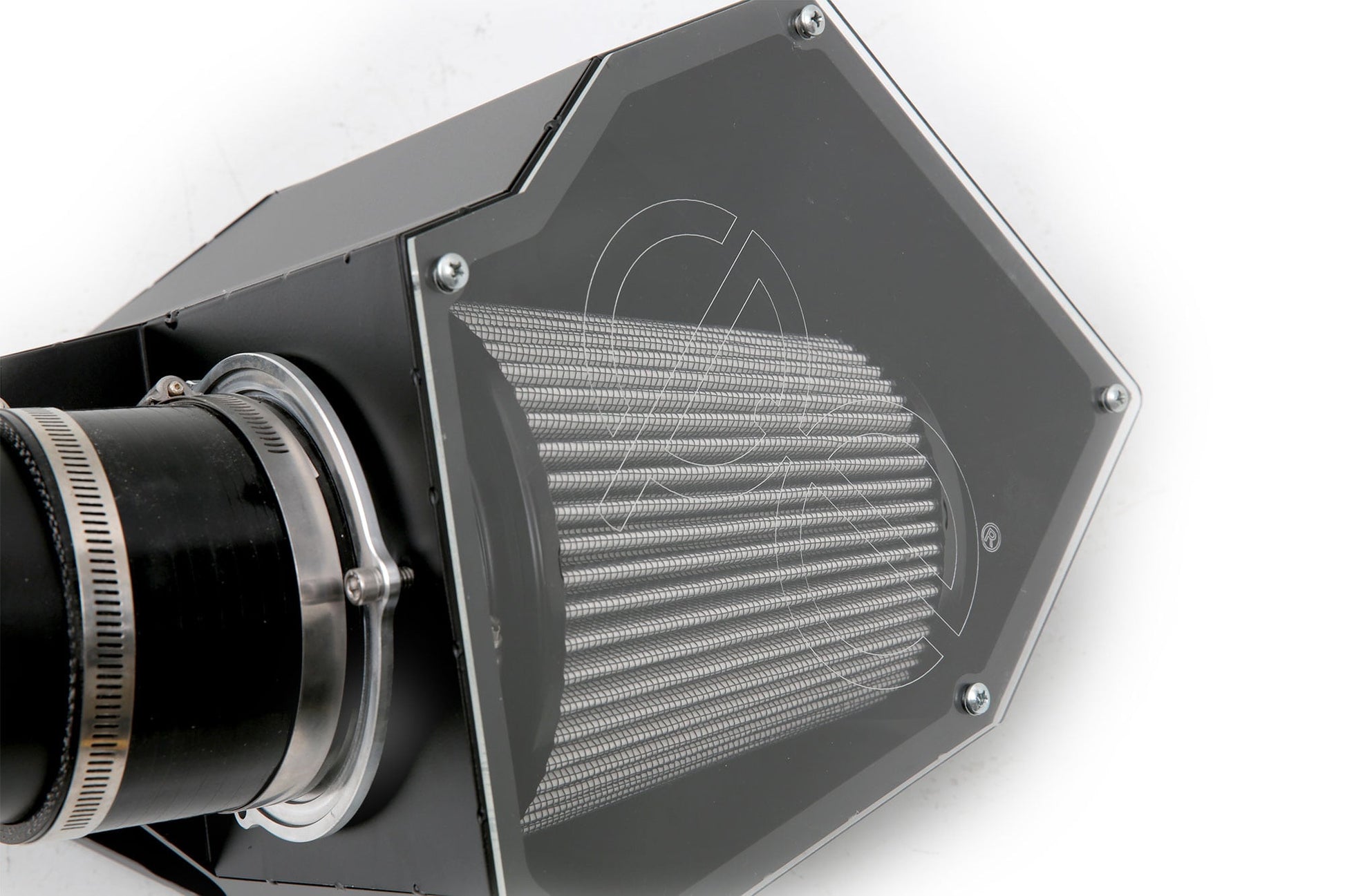 The intake tube then attaches to the air box through a 5-ply silicone elbow and a CNC-lathed aluminum bellmouth. This velocity stack bellmouth smoothly compresses the air to provide a minimal amount of energy loss which translates to a higher air speed through the tube. We include a 4.00" air filter specially designed to give the most free flowing air flow possible. Additionally this comes with your choice between Dflow™ or SynOil™.