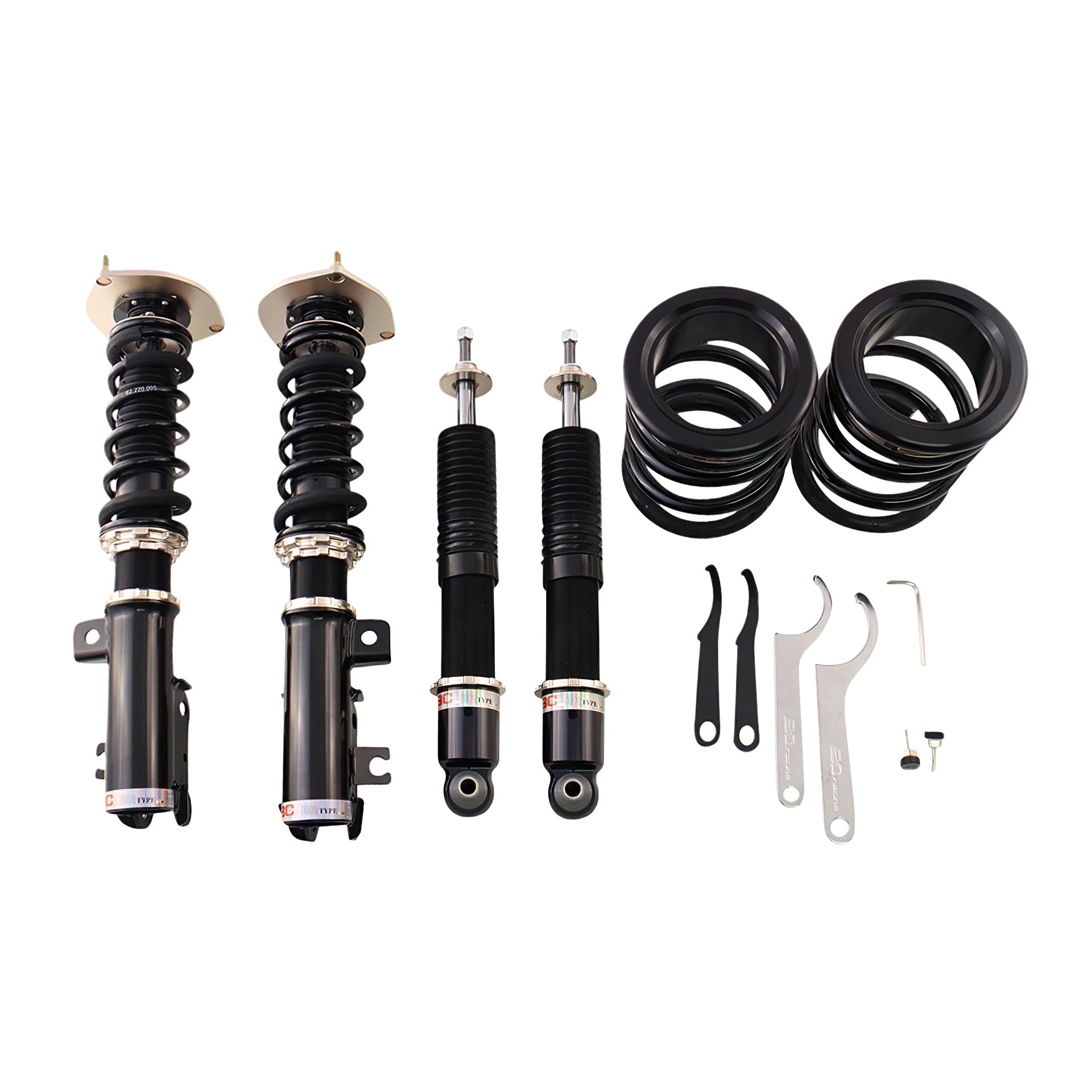 The BC Racing BR Series offers the most affordable entry into coilover suspension without sacrificing performance, comfort, build quality, vehicle height, or handling. This is done by extensively testing each vehicle then refining the coilover characteristics as many times as needed to ensure the most well-balanced and affordable aftermarket suspension conceivable. BC Racing takes great pride in choosing spring rates for our off-the-shelf kits that strike the perfect balance between comfort and performance so you're never stuck with an oversprung suspension like many other brands sell. BC Racing offers one of the widest ranges of damping adjustment with 30-clicks of compression/rebound adjusted simultaneously on the BR Series. With meticulously chosen spring rates, damper valving, and one of the widest adjustment ranges in the industry, you can't go wrong with the BC Racing BR Series Coilover System.
