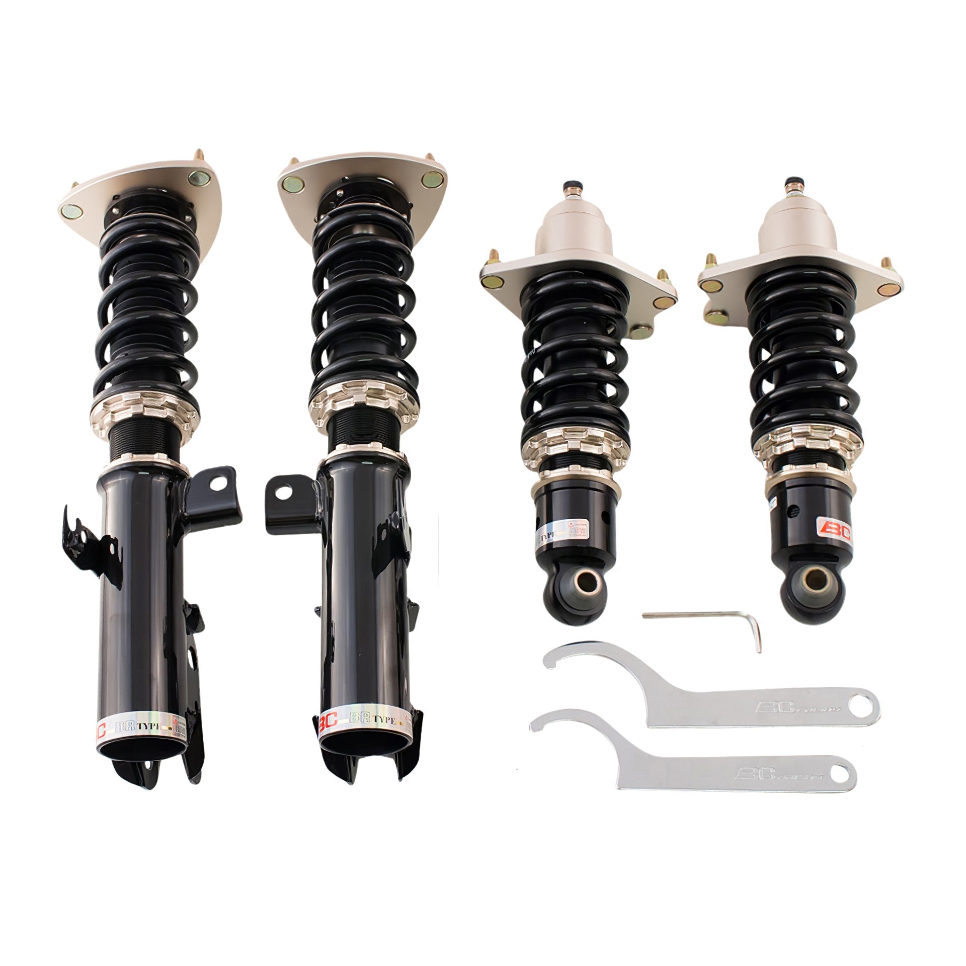 The BC Racing BR Series offers the most affordable entry into coilover suspension without sacrificing performance, comfort, build quality, vehicle height, or handling. This is done by extensively testing each vehicle then refining the coilover characteristics as many times as needed to ensure the most well-balanced and affordable aftermarket suspension conceivable. BC Racing takes great pride in choosing spring rates for our off-the-shelf kits that strike the perfect balance between comfort and performance so you're never stuck with an oversprung suspension like many other brands sell. BC Racing offers one of the widest ranges of damping adjustment with 30-clicks of compression/rebound adjusted simultaneously on the BR Series. With meticulously chosen spring rates, damper valving, and one of the widest adjustment ranges in the industry, you can't go wrong with the BC Racing BR Series Coilover System.