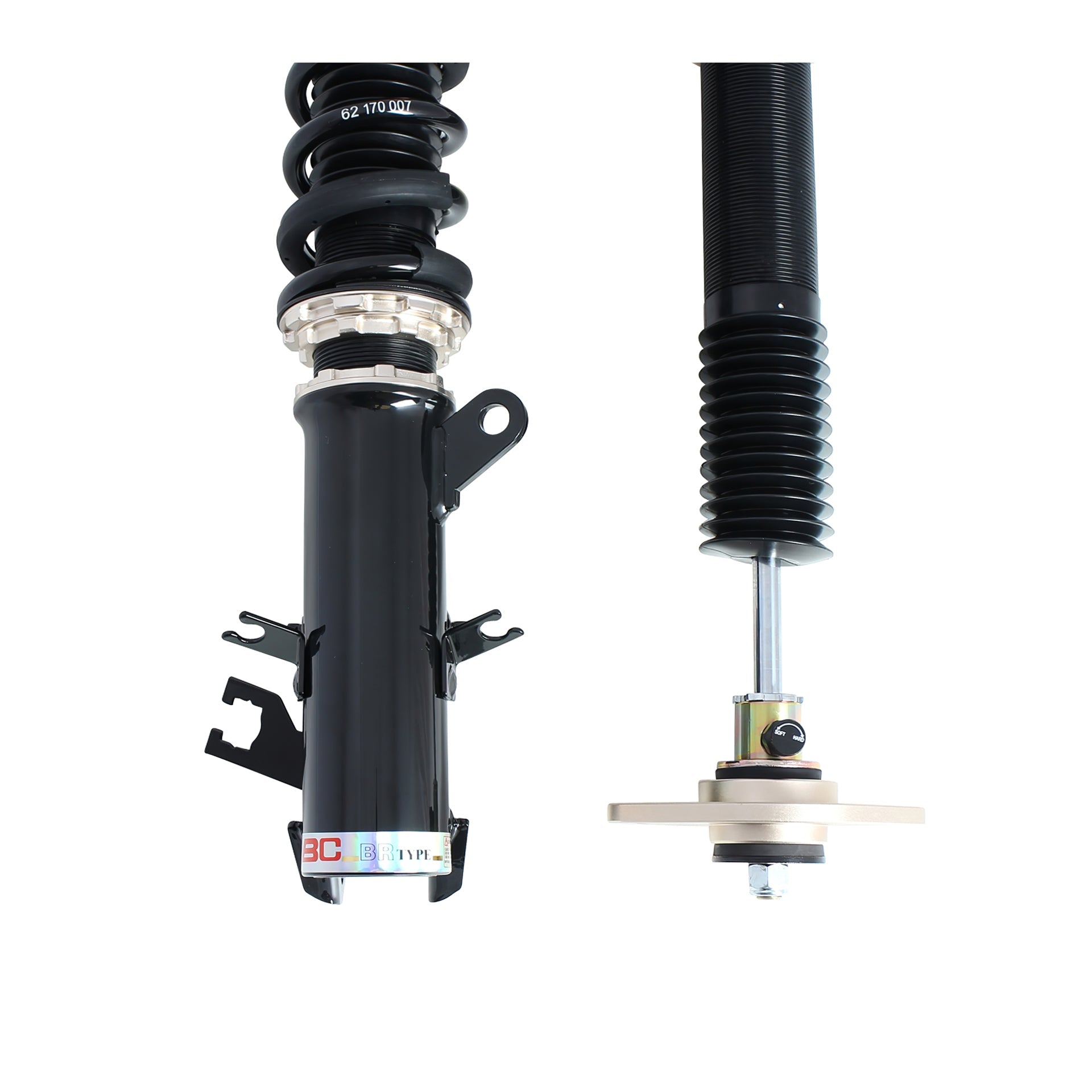 The BC Racing BR Series offers the most affordable entry into coilover suspension without sacrificing performance, comfort, build quality, vehicle height, or handling. This is done by extensively testing each vehicle then refining the coilover characteristics as many times as needed to ensure the most well-balanced and affordable aftermarket suspension conceivable. BC Racing takes great pride in choosing spring rates for our off-the-shelf kits that strike the perfect balance between comfort and performance so you're never stuck with an oversprung suspension like many other brands sell. BC Racing offers one of the widest ranges of damping adjustment with 30-clicks of compression/rebound adjusted simultaneously on the BR Series. With meticulously chosen spring rates, damper valving, and one of the widest adjustment ranges in the industry, you can't go wrong with the BC Racing BR Series Coilover System.