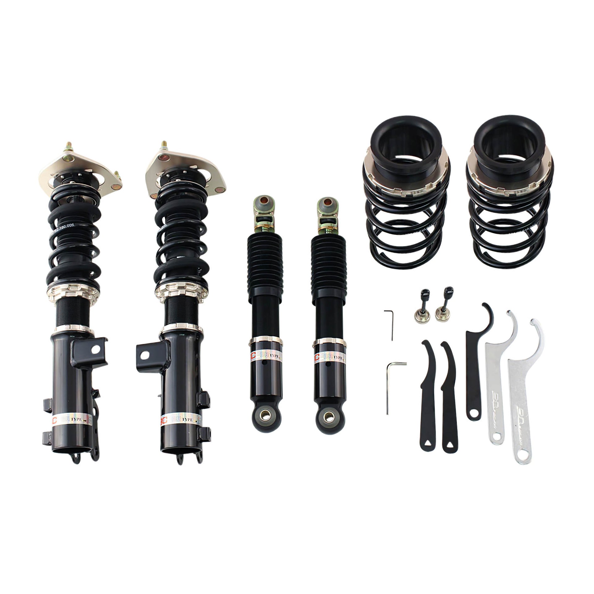 The BC Racing BR Series offers the most affordable entry into coilover suspension without sacrificing performance, comfort, build quality, vehicle height, or handling. This is done by extensively testing each vehicle then refining the coilover characteristics as many times as needed to ensure the most well-balanced and affordable aftermarket suspension conceivable. BC Racing takes great pride in choosing spring rates for our off-the-shelf kits that strike the perfect balance between comfort and performance so you're never stuck with an oversprung suspension like many other brands sell. BC Racing offers one of the widest ranges of damping adjustment with 30-clicks of compression/rebound adjusted simultaneously on the BR Series. With meticulously chosen spring rates, damper valving, and one of the widest adjustment ranges in the industry, you can't go wrong with the BC Racing BR Series Coilover System.