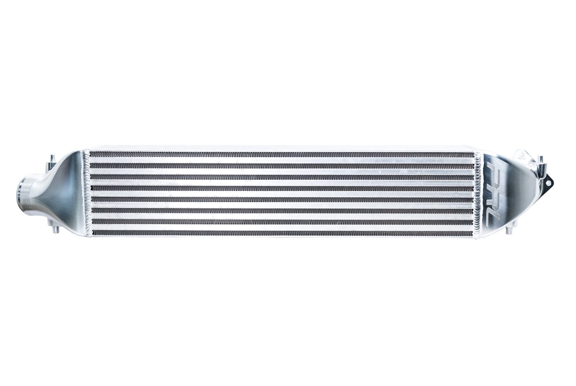 Our intercooler core increases surface area by 54 Percent and internal flow by91 Percent to allow optimal cooling and airflow. Billet machined aluminum end tanks maximize efficiency while looking as smooth as they flow! This intercooler utilizes factory mounting spots with our billet machined end tanks.