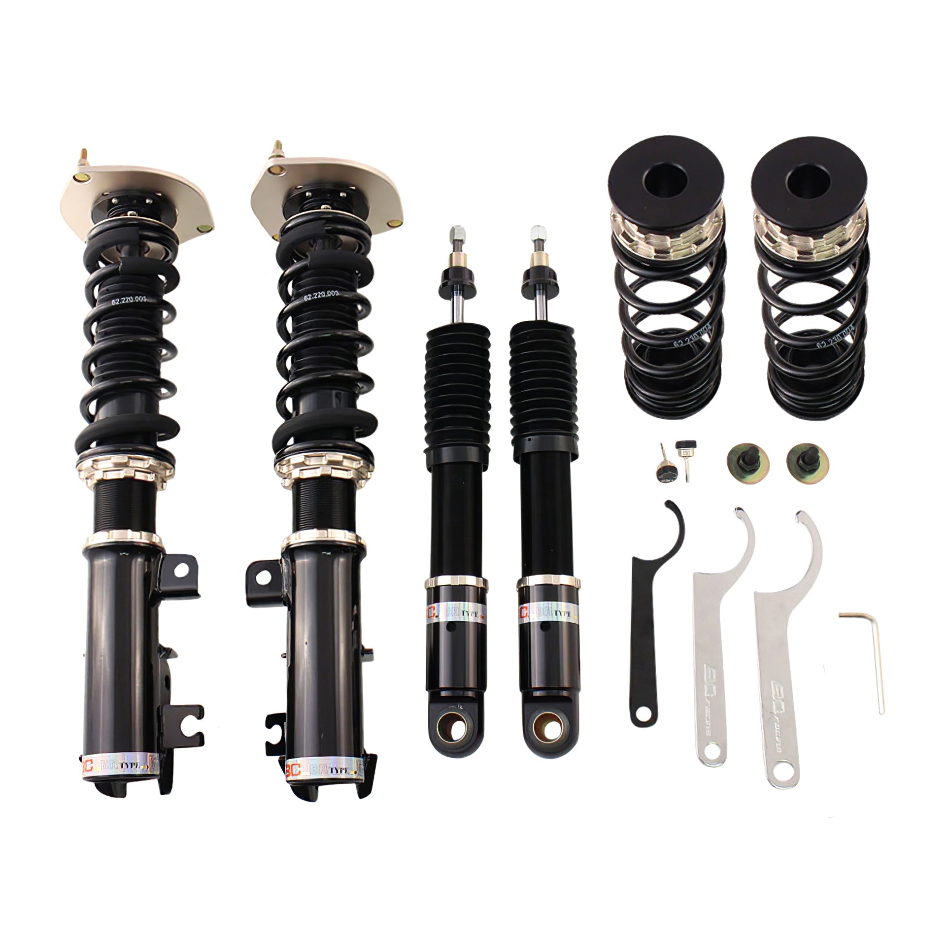 The BC Racing BR Series offers the most affordable entry into coilover suspension without sacrificing performance, comfort, build quality, vehicle height, or handling. This is done by extensively testing each vehicle then refining the coilover characteristics as many times as needed to ensure the most well-balanced and affordable aftermarket suspension conceivable. BC Racing takes great pride in choosing spring rates for our off-the-shelf kits that strike the perfect balance between comfort and performance so you're never stuck with an oversprung suspension like many other brands sell. BC Racing offers one of the widest ranges of damping adjustment with 30-clicks of compression/rebound adjusted simultaneously on the BR Series. With meticulously chosen spring rates, damper valving, and one of the widest adjustment ranges in the industry, you can't go wrong with the BC Racing BR Series Coilover System.