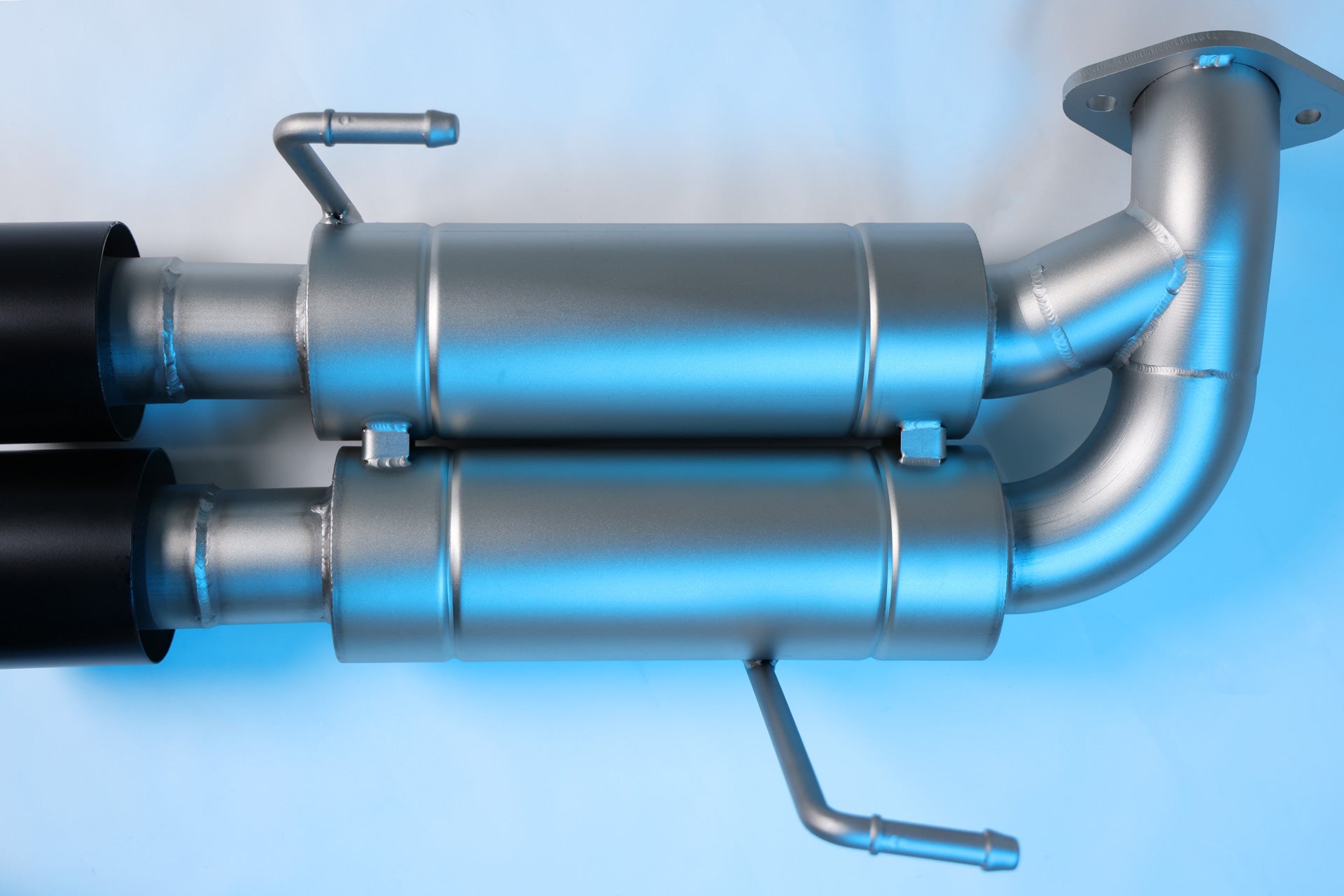 cp-e® uses Titan™ finish 304 Stainless Steel for all of our exhaust systems. We mandrel bend and cut the 18g heavy duty stainless piping on our in-house CNC Bender and CNC Mills. The system features custom cast Stainless Flanges, reliable hangers, custom made Stainless Mufflers and polished stainless tips. Everything is TIG welded by hand to get beautiful color and durability in the welds. Designed fully in a CAD environment, cp-e® is able to guarantee a factory-like fit every-time with great performance gains.