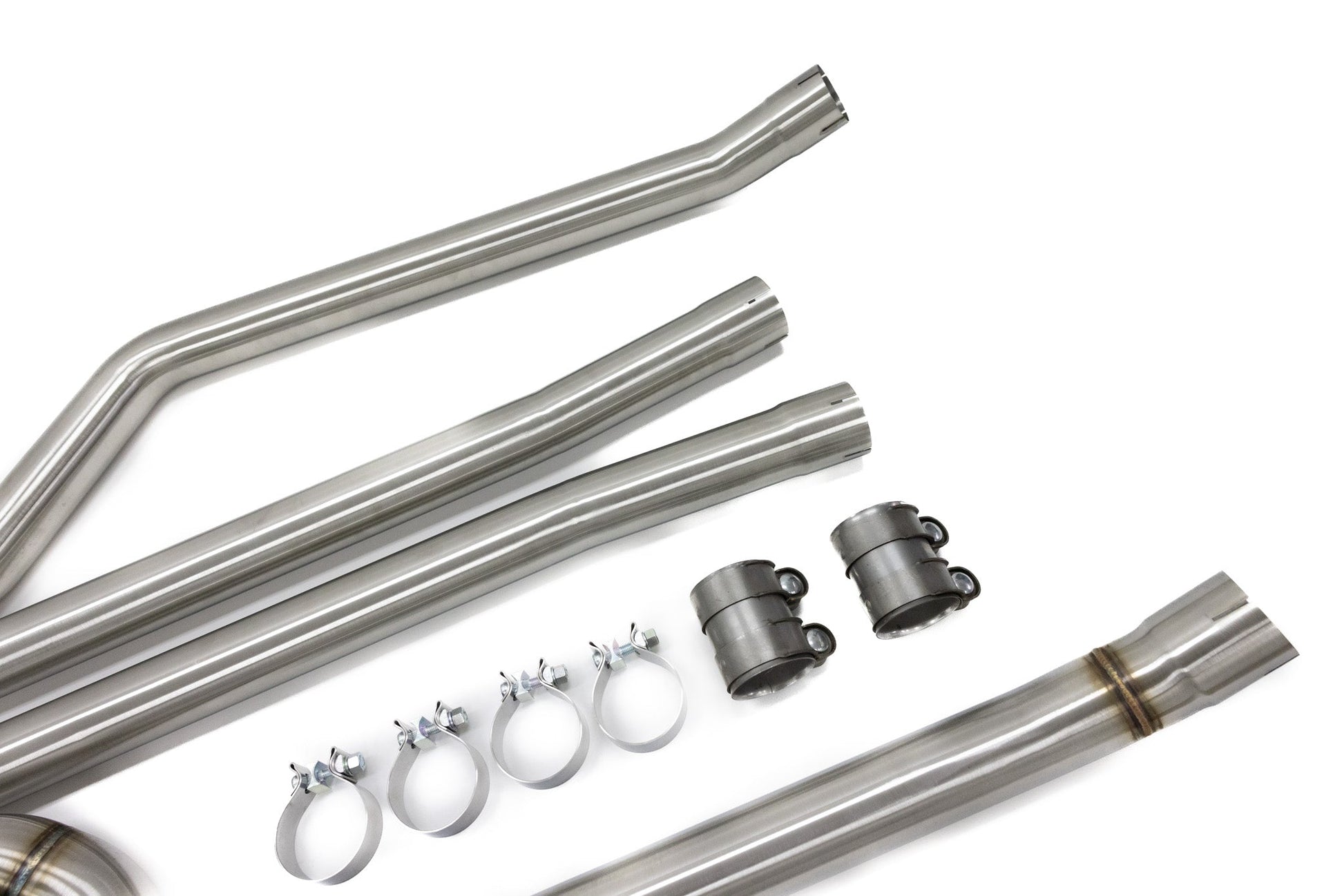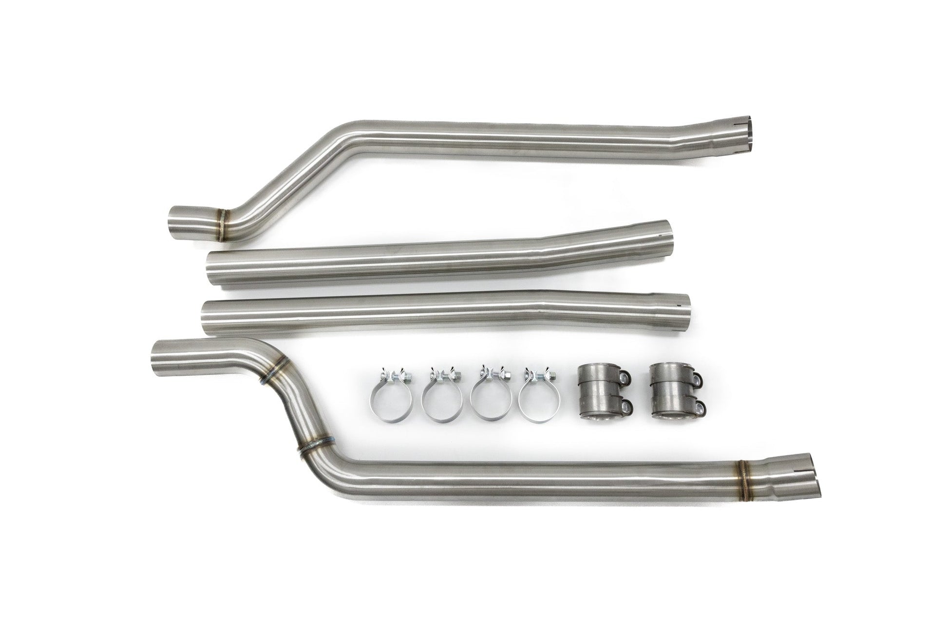 The ARM N63TU3 Midpipes come in two main sections, the front section and the rear section. The front section connects to the downpipes which utilize the slip-fit style connection.
