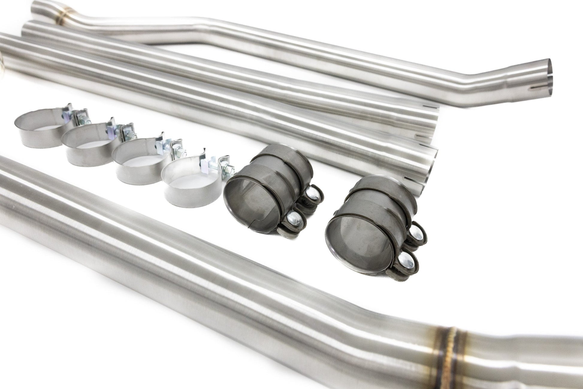 As shown in the diagram above, the ARM N63TU3 Midpipes will replace the middle section of the exhaust, between the downpipes and the axle back section. By retaining the OEM axle back section the original function of the OEM exhaust valves are still retained. Giving you the option to drive around in "Comfort" mode with the valves closed, or switch to "Sport" or "Sport +" to unleash all the sounds of your N63!