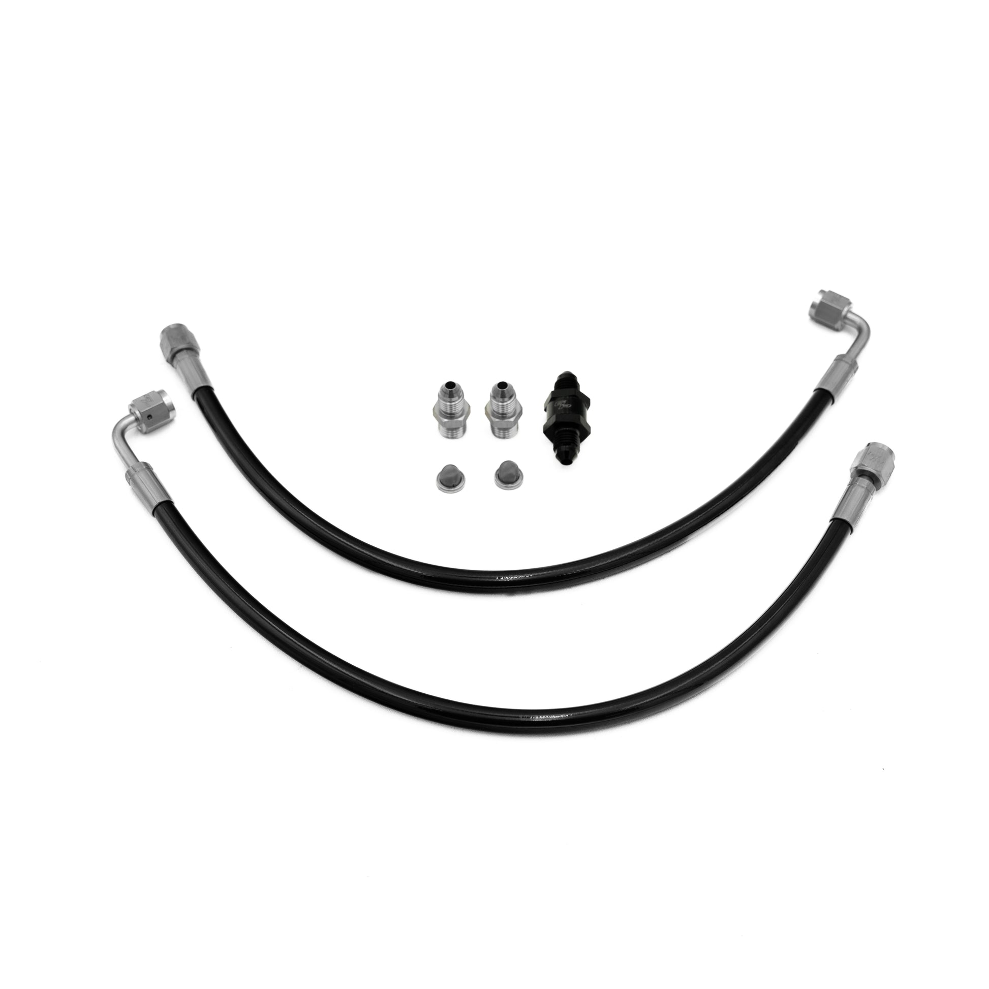 Our filtered supply line provides plenty of flow to keep lubrication to the turbo's bearings which is essential. Included in our supply line kit is our Graveyard Performance inline filter with 2 replaceable filter elements which helps to ensure the turbo is receiving good, clean oil, free of particulate matter or debris.