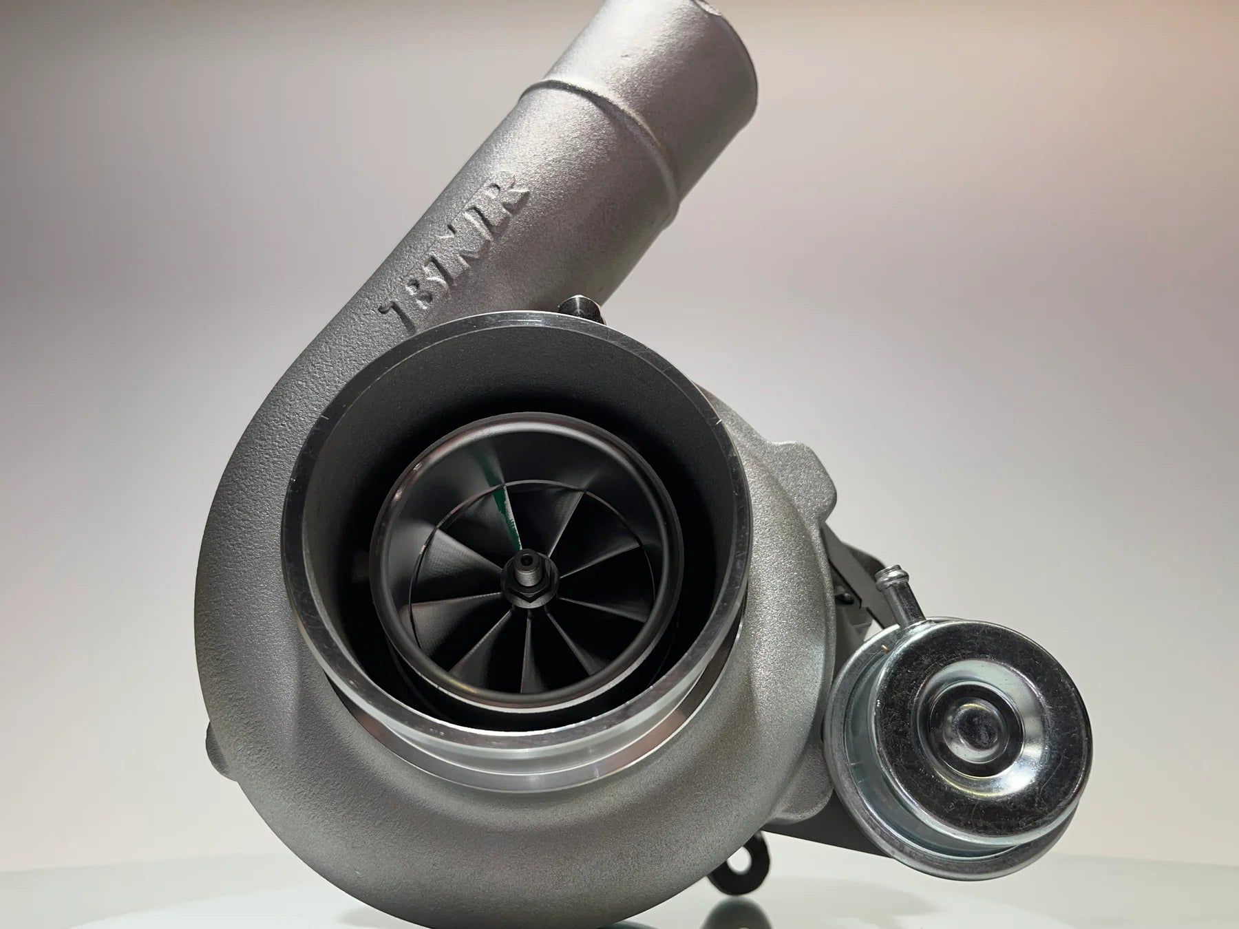 Our new S5 is a ceramic dual ball bearing G30-770 center section and is rated for 770 BHP. The exhaust housing is .82 a/r and has a mega sized 32mm internal wastegate port! The compressor housing is our .70 a/r T04B casting with a 3.5” inlet with antisurge port (T51R mod) along with an extended 2.25” outlet. Our internal wastegate actuator also got a bump in spring pressure so customers can really pump out big boost. Base boost is preset at 18 psi but can easily be preloaded up to 22 psi for the ones that want to reach maximum potential from this turbocharger.