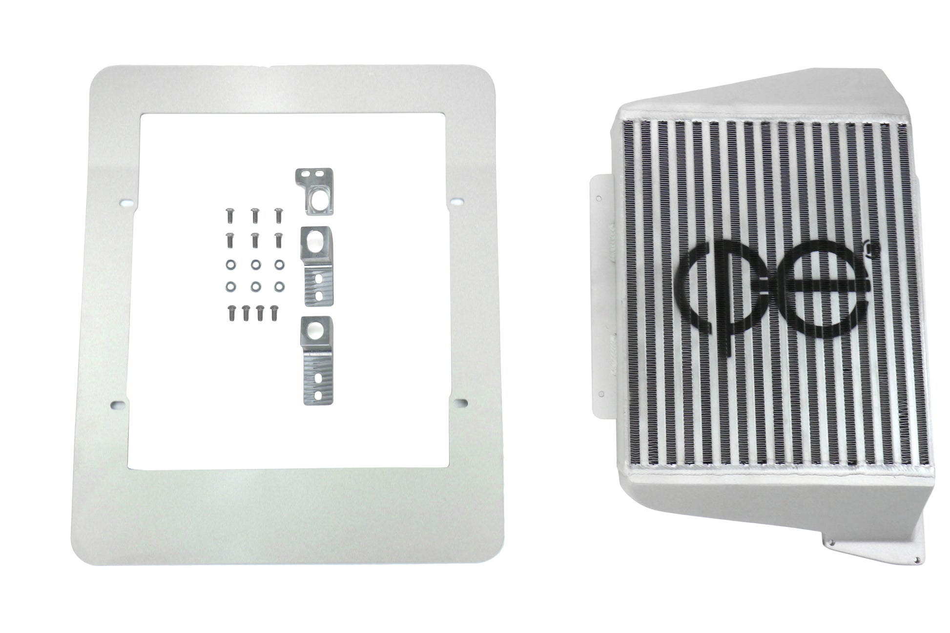 Here, you are looking at the cp-e Top Mount Intercooler. This intercooler features a bar and plate design that improves the overall flow and cooling capacity to lower the intake charge temperatures. This will prevent the chances of heat soak as bolt-on upgrades will surpass the thermal capacity of your factory intercooler.