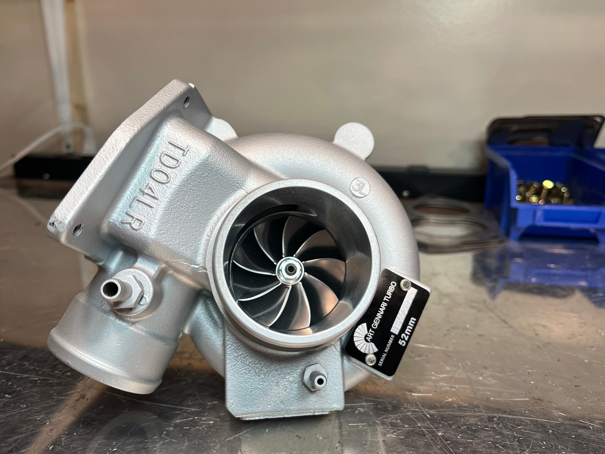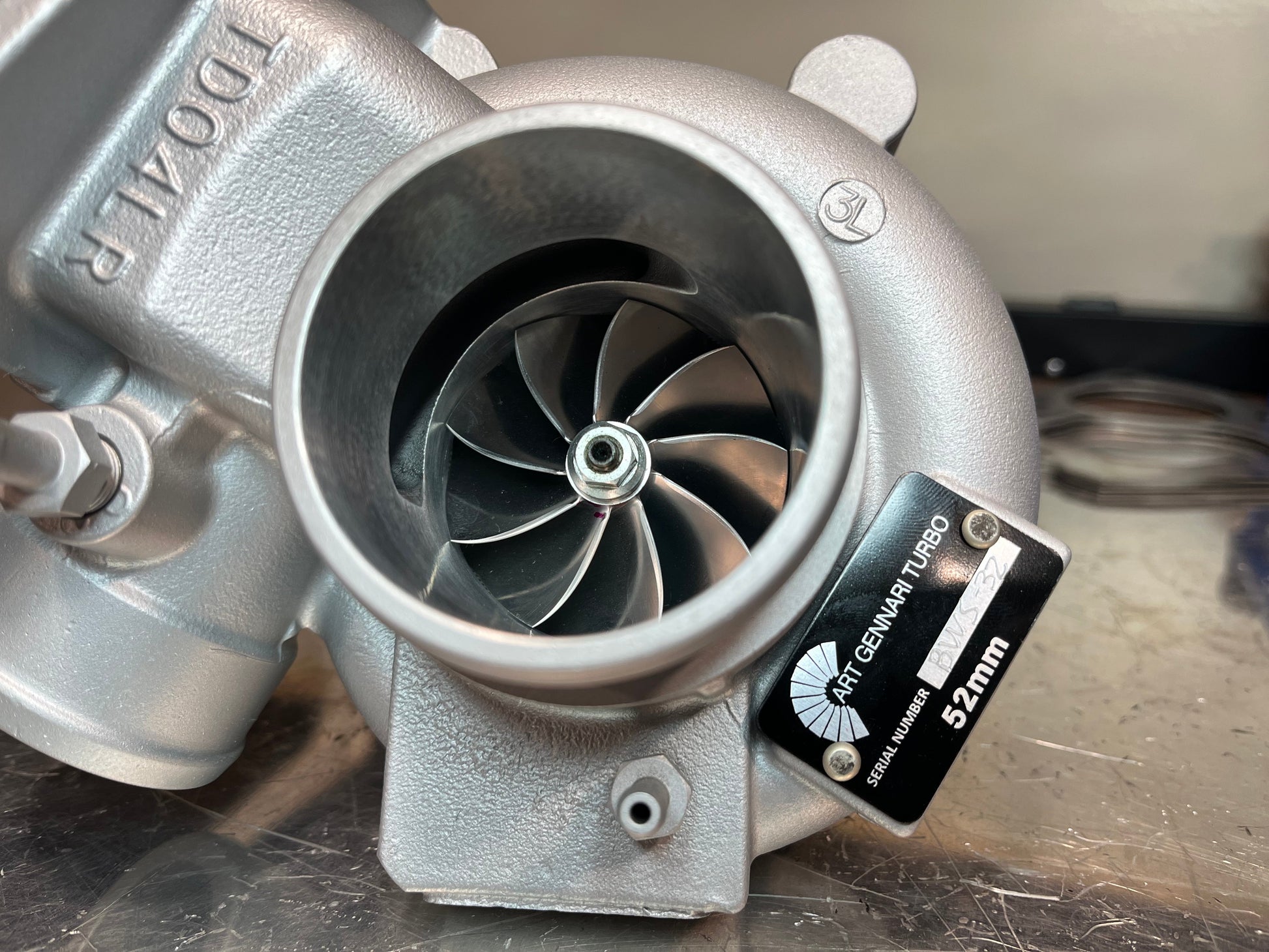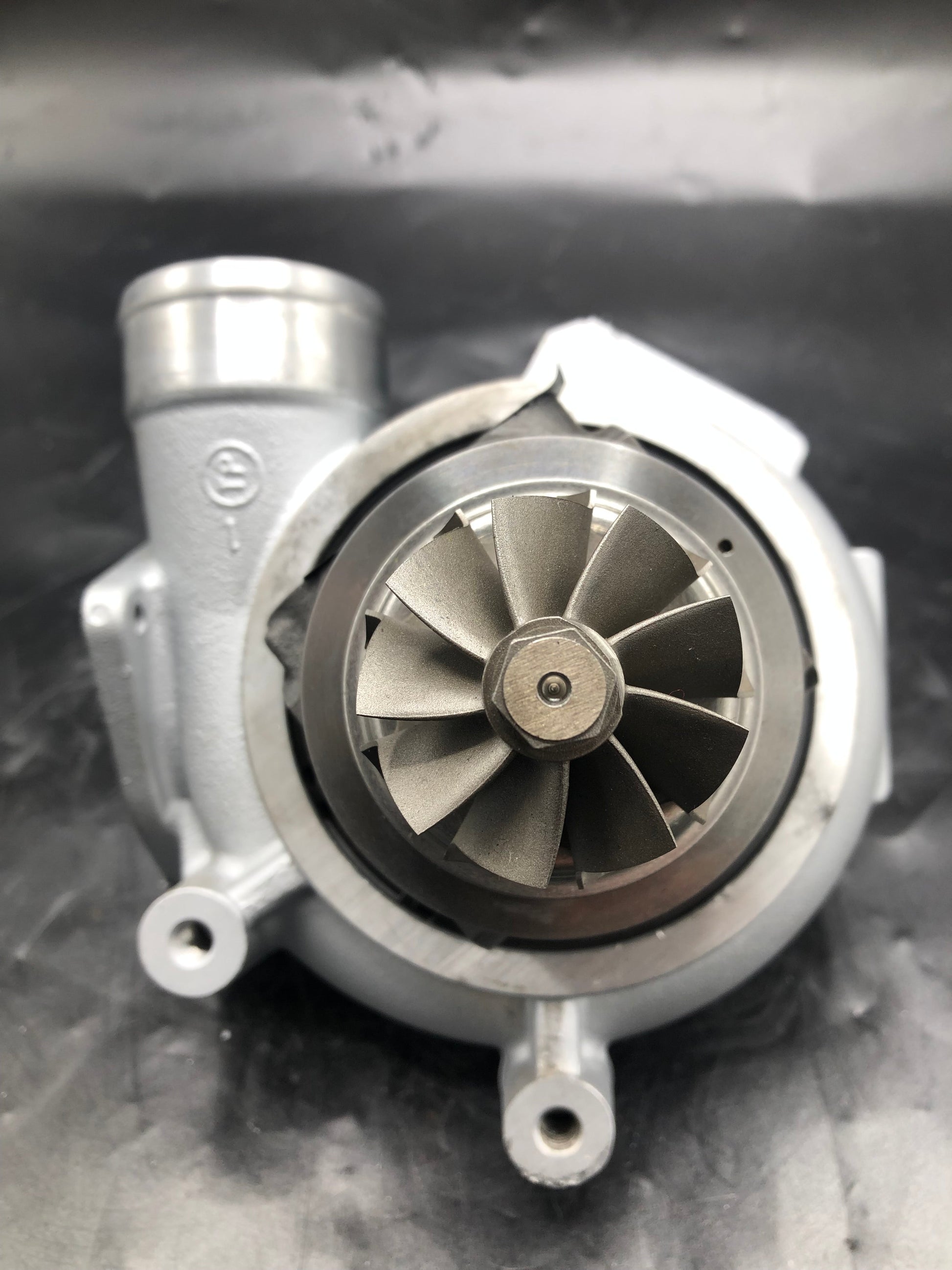 Compressor wheel: All New 52mm Billet compressor wheel, LE Blade design, Swept leading edge, Slim Hub and nut, Extended tips, high trim