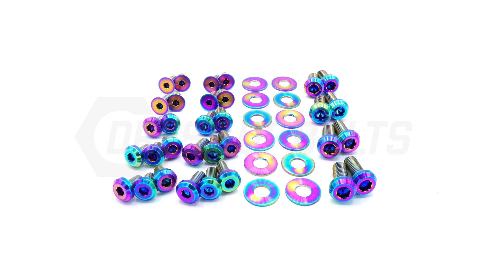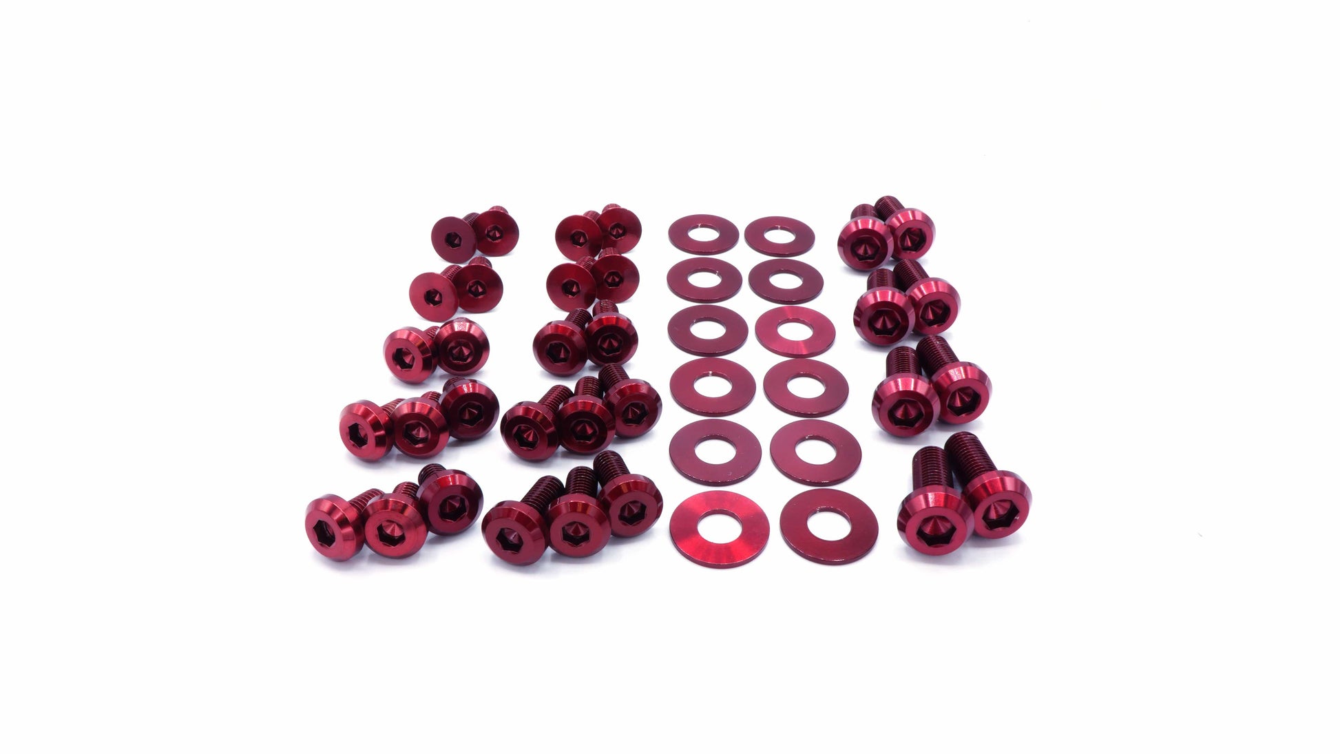 This 44 piece kit includes bolts and washers manufactured from extremely durable, anticorrosive, and lightweight GR5 titanium metal.