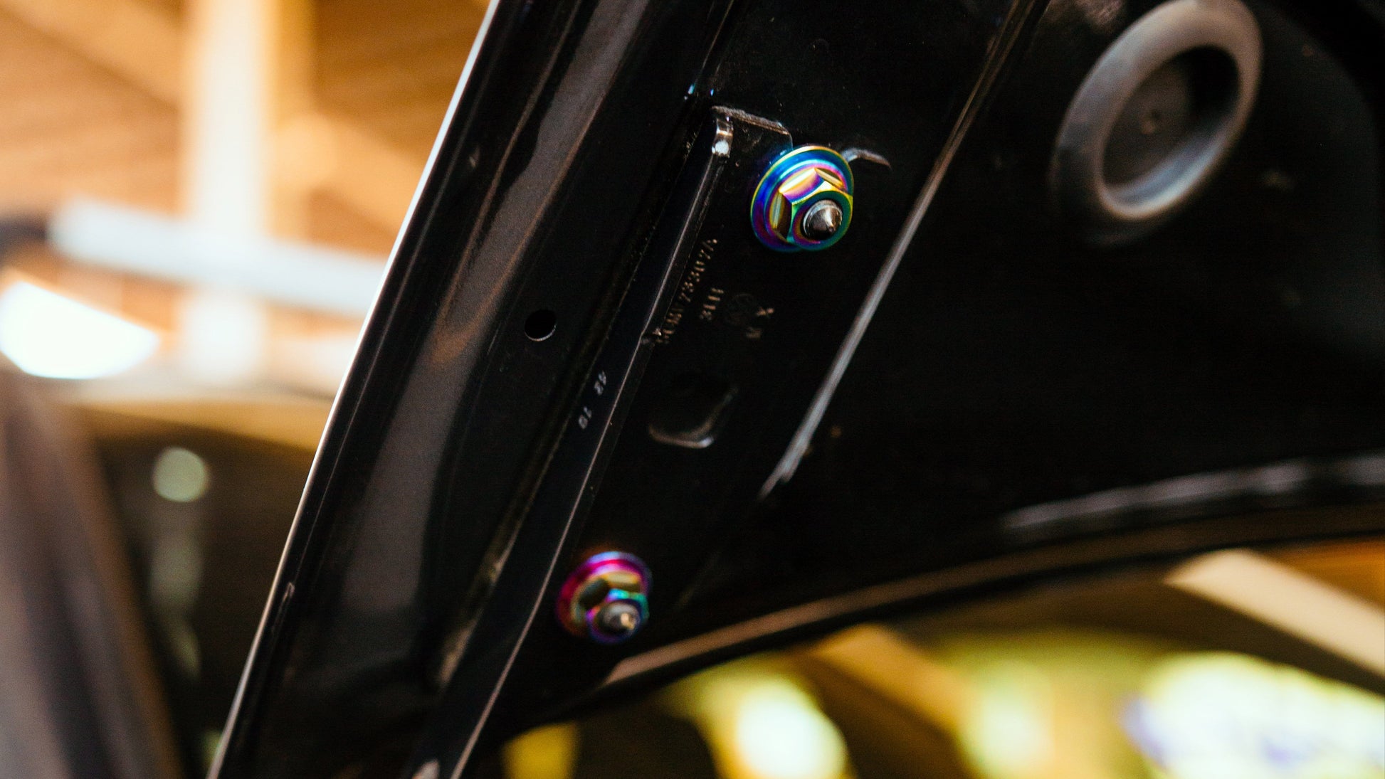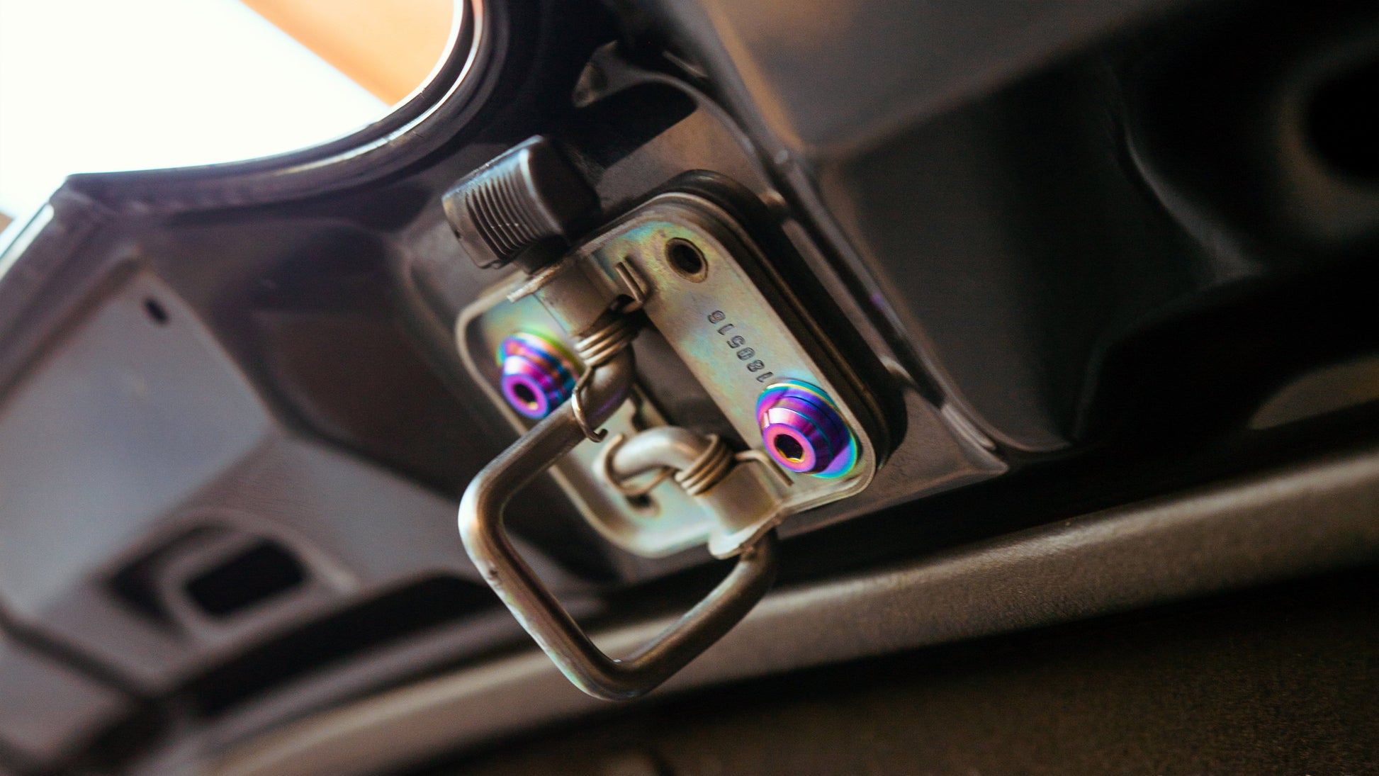 Dress Up Bolts Titanium Hardware Hood Kit for the MK7 GTI takes care of all the hardware locations around the hood of the car.