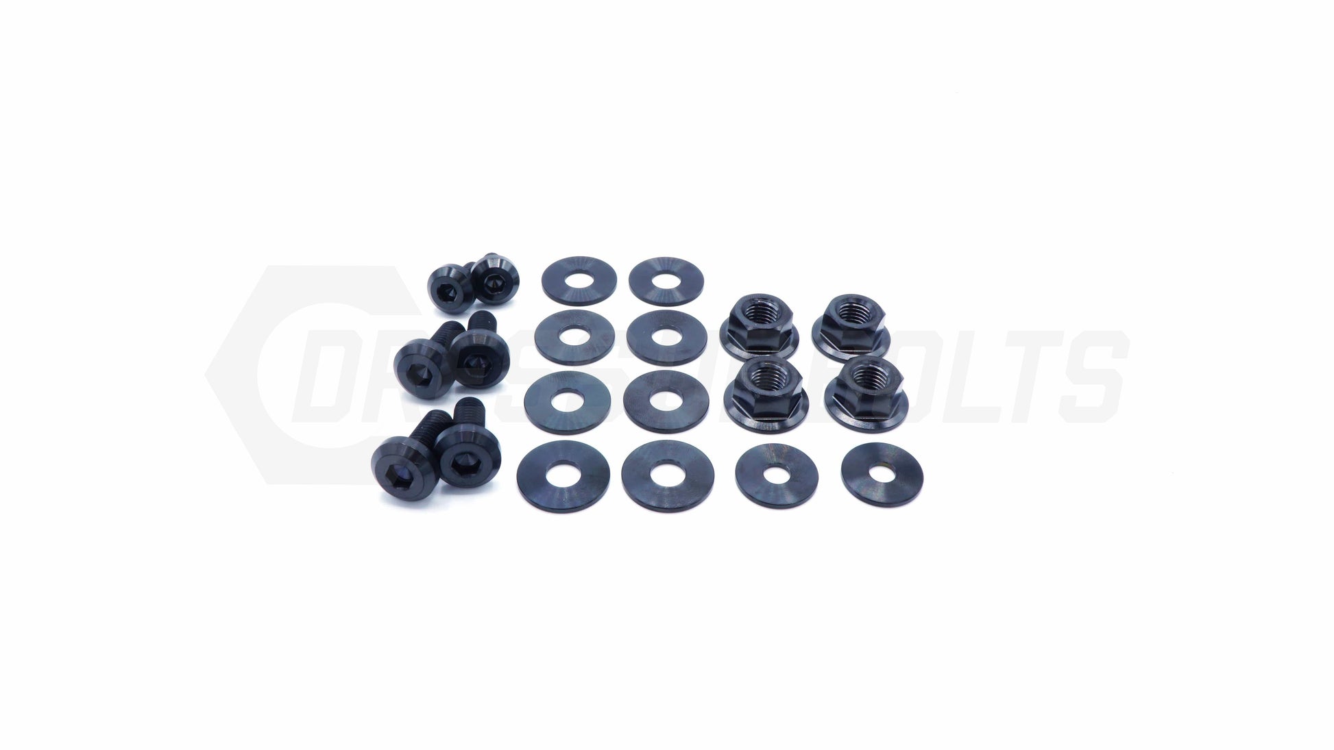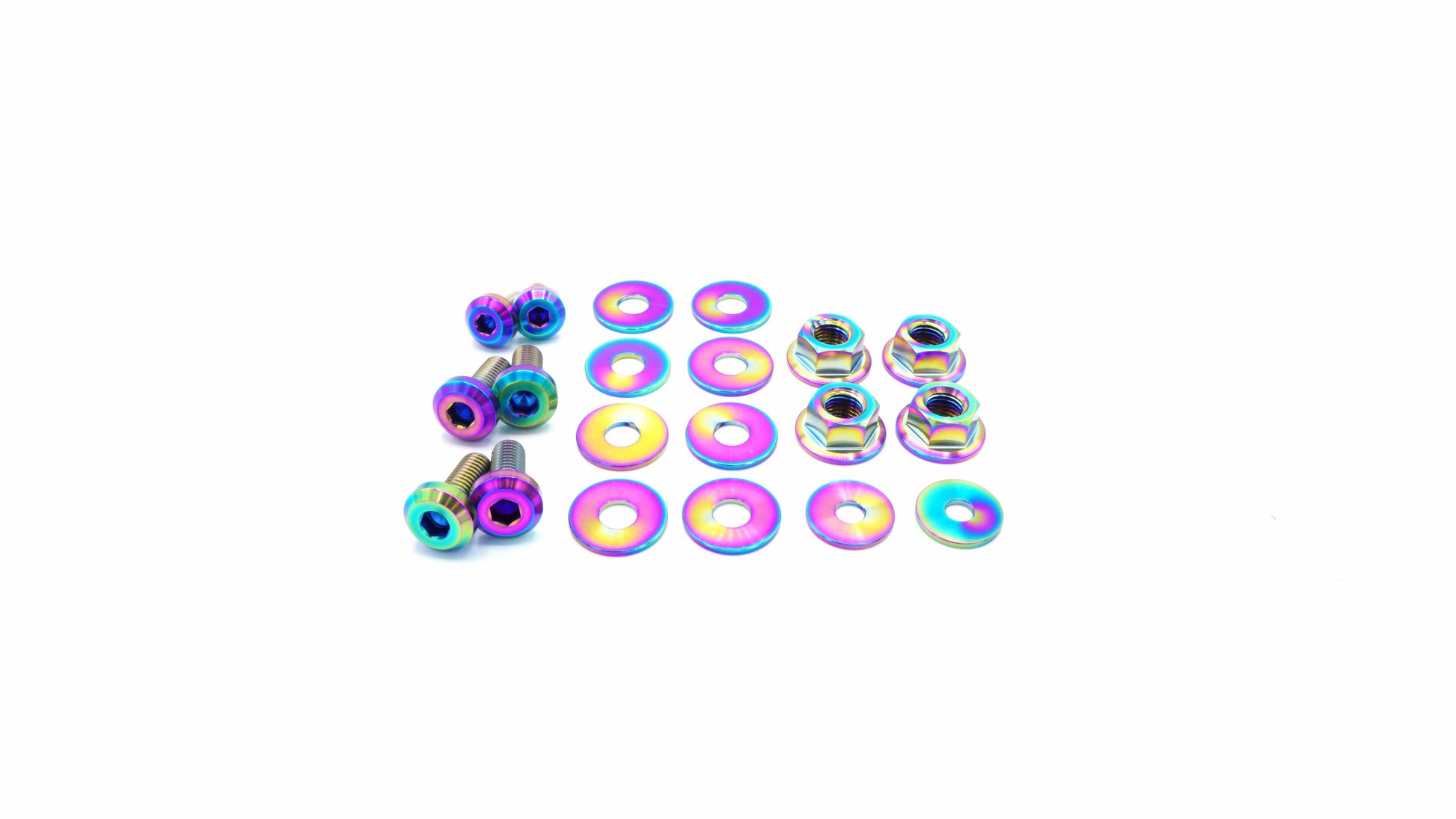 This 20 piece kit includes bolts, nuts, and washers manufactured from extremely durable, anticorrosive, and lightweight GR5 titanium metal.