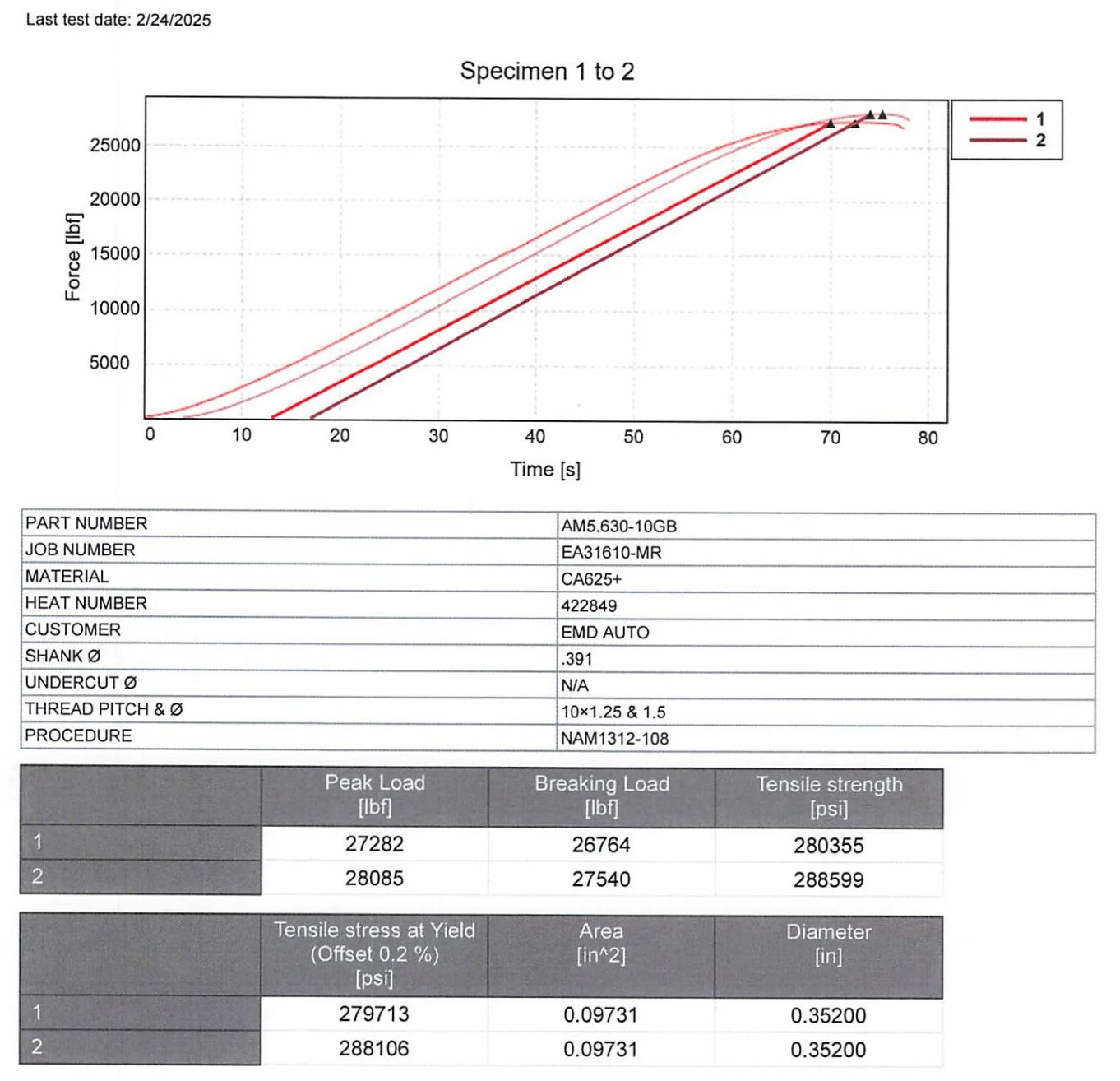 - Exceptional Strength: Boasting an impressive tensile strength from 260,000 to 280,000 psi, our ARP 625+ material outperforms any stud available on the market. Tensile strength reports can be viewed below.