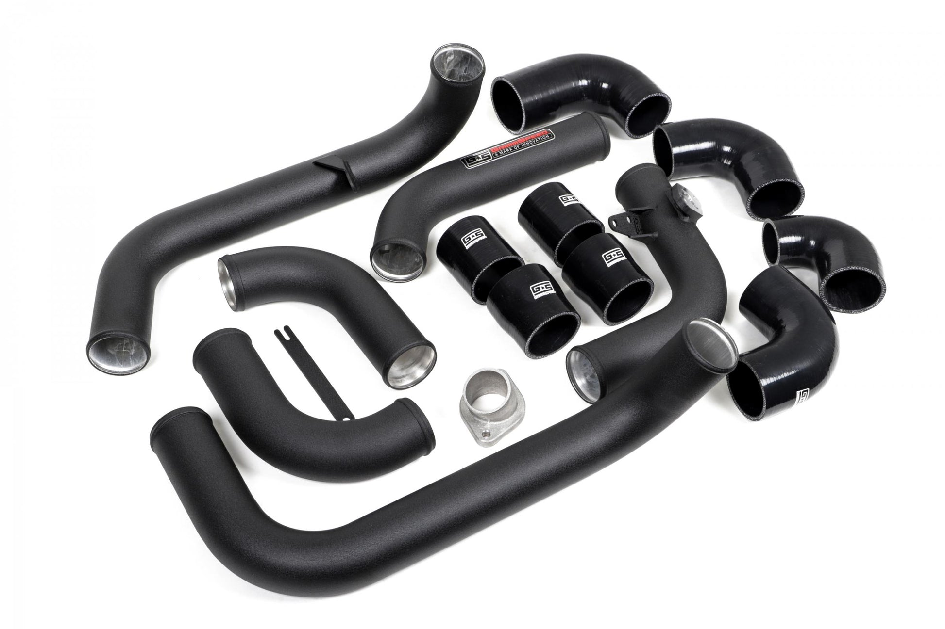 The pipes are bead rolled at each end to lock together with the Included 5-ply silicone couplers so you don't have to worry about blow-offs under high boost. They are then covered in gorgeous, durable Redor Black wrinkle powder coat finish that looks incredible and matches your other GrimmSpeed parts!