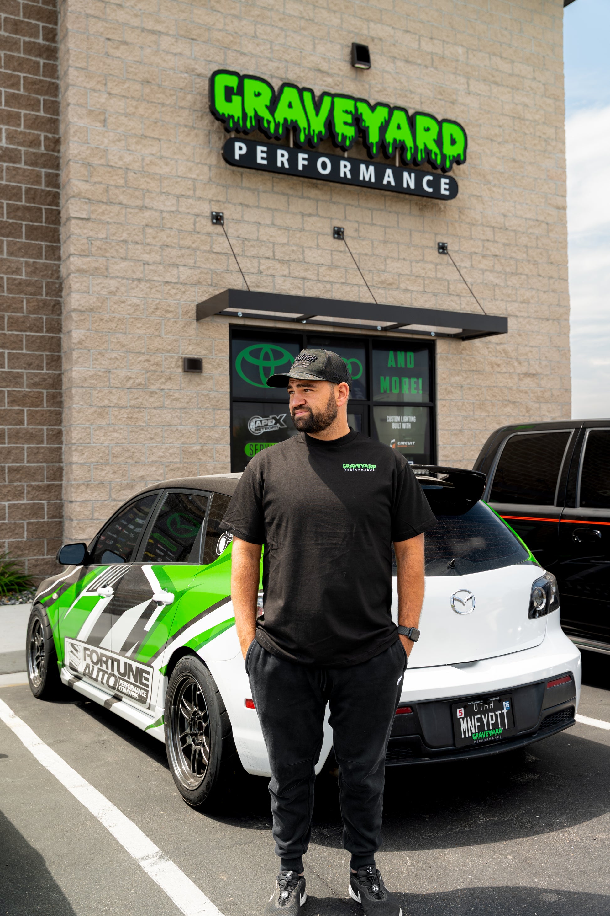 New merch release featuring a detailed graphic of our 2009 Mazdaspeed shop car! Whether you're wanting something for a night out, or to rep your favorite brand at the track, this shirt is for you!