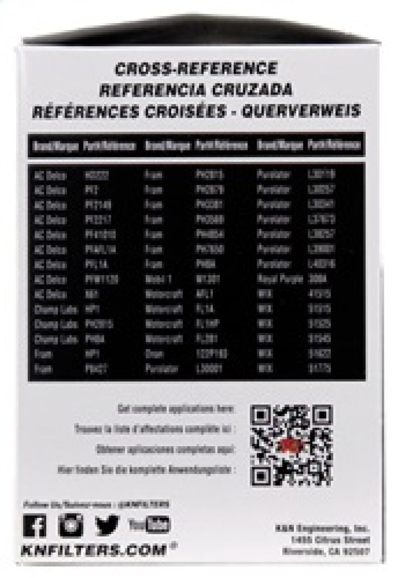 K&N Oil Filter for Ford/Audi/VW/Toyota/Mercury/Mazda/Nissan/Dodge/Lincoln/Volvo 3.656in OD