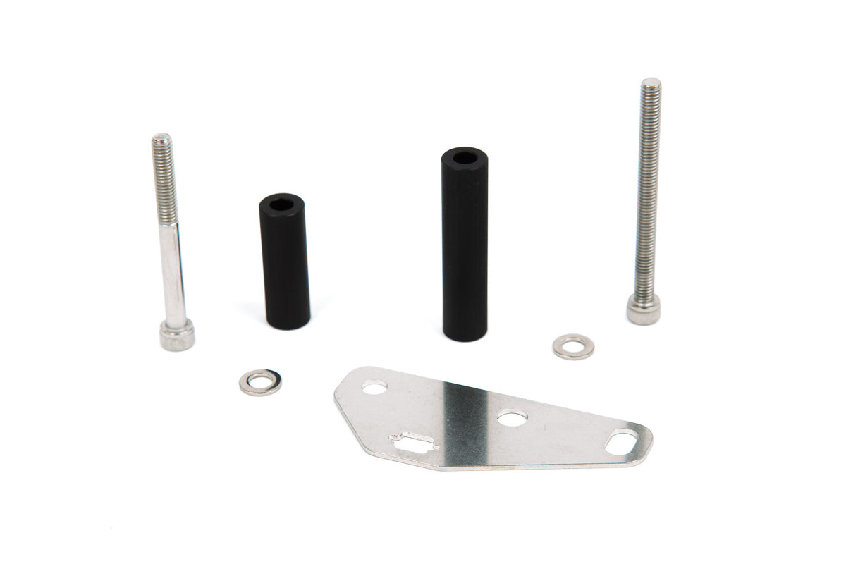 Following the machining process, these supports are Black anodized for a clean look and corrosion resistance. This is particularly important in an environment like your engine bay. Clear zinc hardware finishes the look and keeps everything planted firmly.