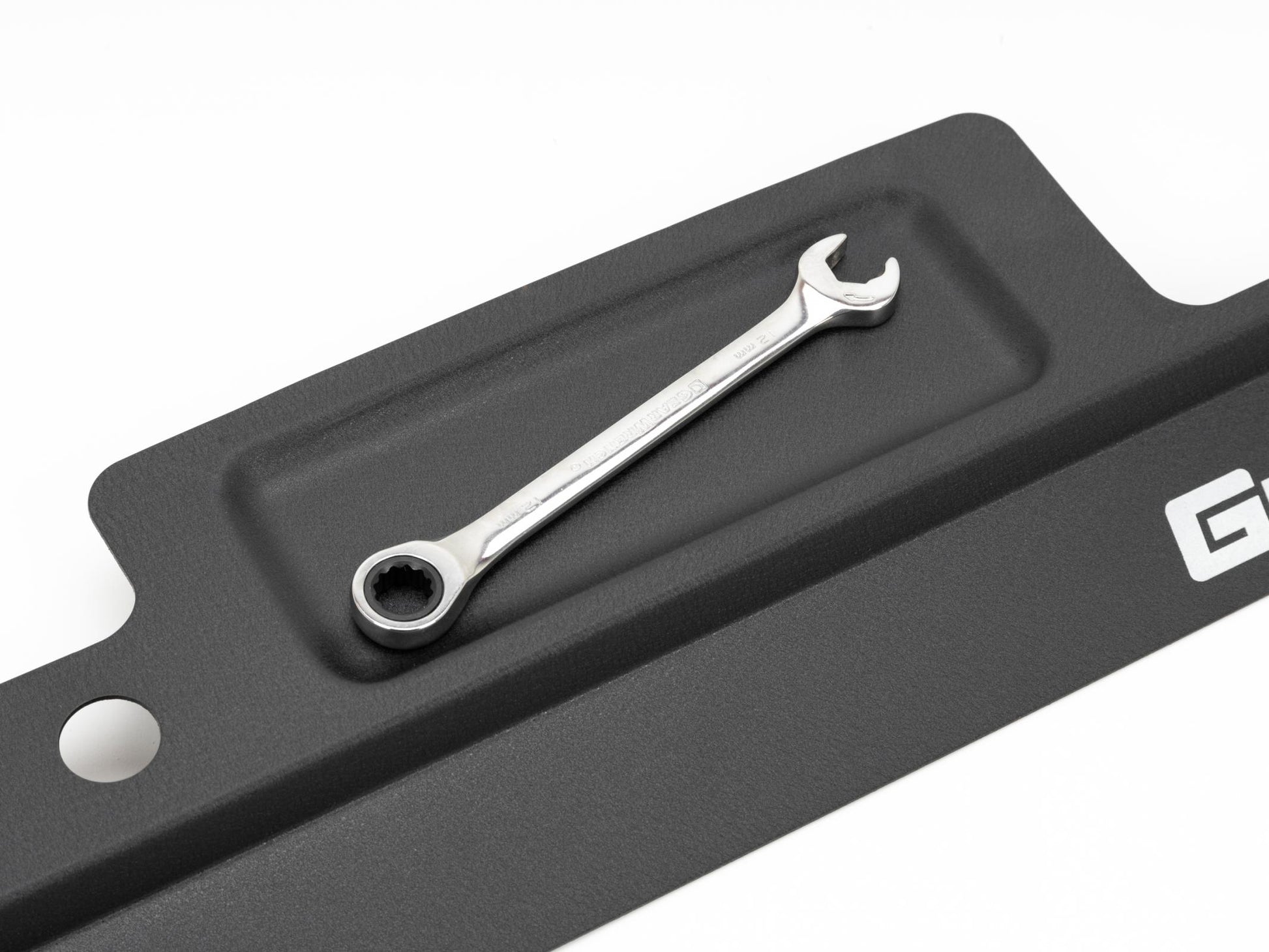 3 problems. 1 clever solution. Innovative Integrated Tool Tray! Keeps Radiator Running Cooler (directs air through radiator) Built In Radiator Stays (much cleaner look than competing products)Heavy Duty DuPont Powder Coat (repeatedly toss tools in tray with no scratching) Hood Prop Holder (nice clean approach to holding the hood prop)How many times have you lost a wrench or socket in your engine bay?