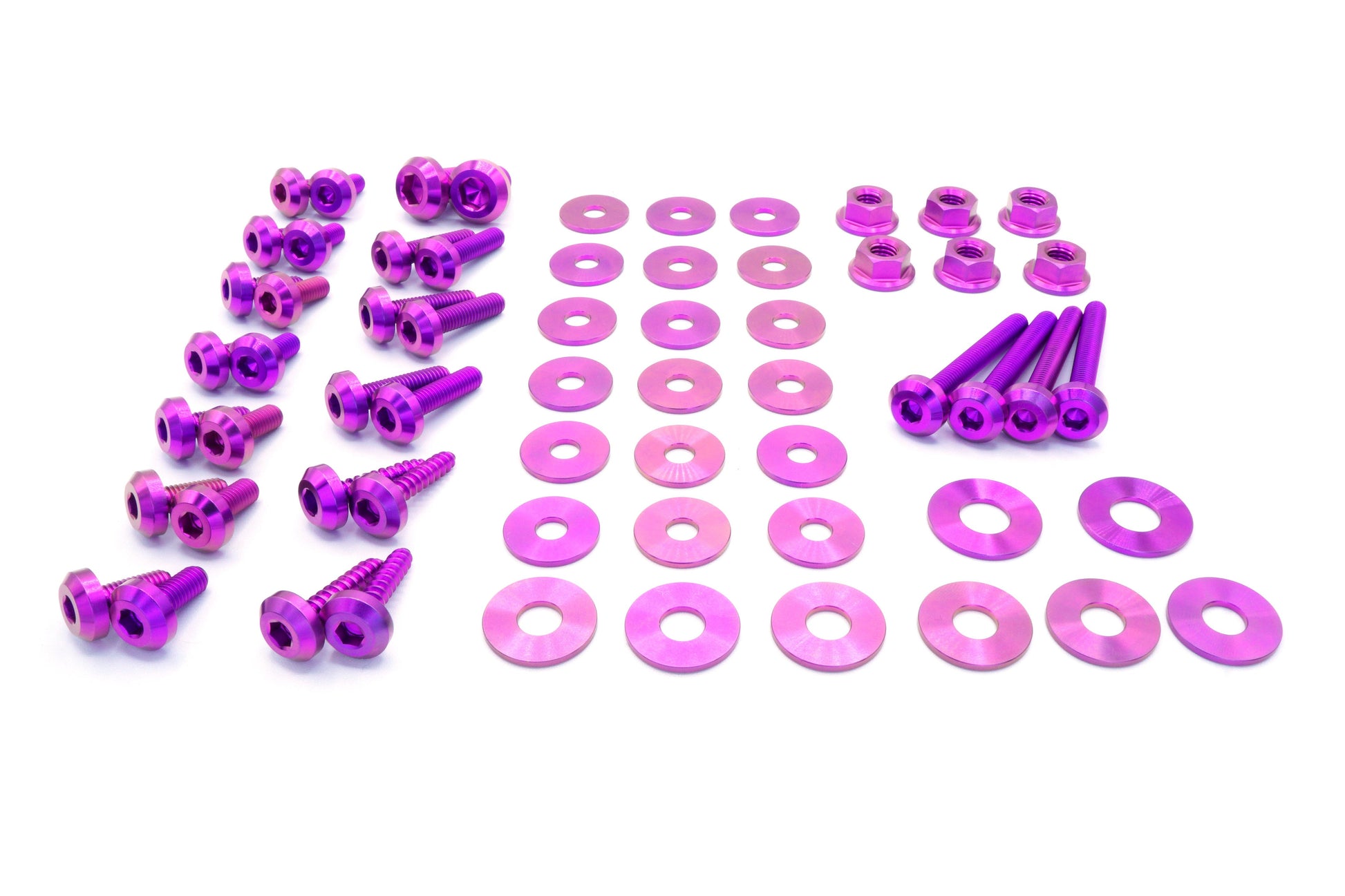 This 62 piece kit includes bolts, screws, nuts, and washers manufactured from extremely durable, anticorrosive, and lightweight GR5 titanium metal.