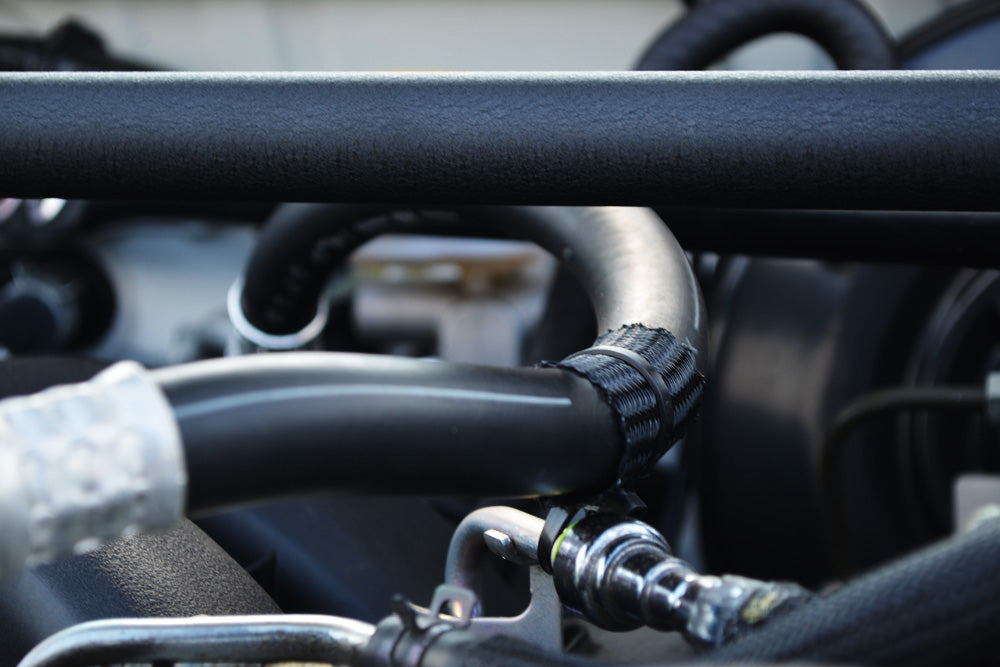 End brackets are laser cut from 3/16 steel and precision CNC bent. These brackets were sized to provide maximum strength and stiffness without compromising thread engagement with the vehicle. Cross tubes are CNC laser cut to length from .125in wall tubing. Mild steel, being both the viable material that is both economical as well as the well-suited for the job, was an easy choice.