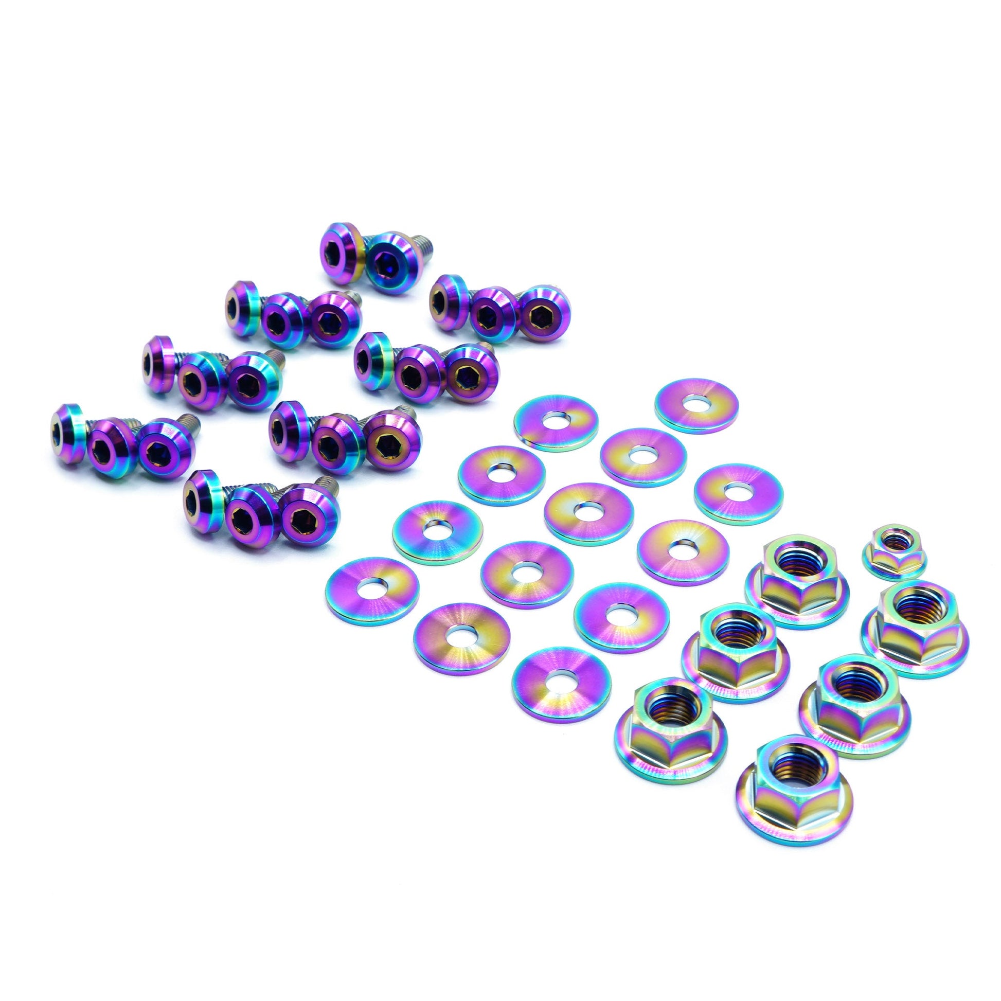 Our engine bay kit includes 23 titanium bolts, 13 titanium washers, and 7 titanium nuts. The kit replaces the hardware circled in the diagram above. The MKIV Supra engine bay kit comes with clear instructions that walk you through where to place each hardware piece, ensuring a fast and effortless install.
