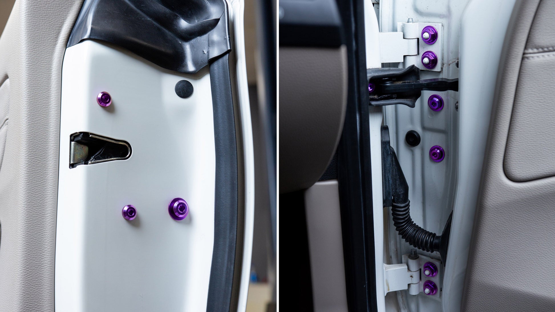 Dress Up Bolts Titanium Hardware Door kit for the BMW E82 135i is designed to replace the door latches, striker plates, door hinges, door checks, and more!