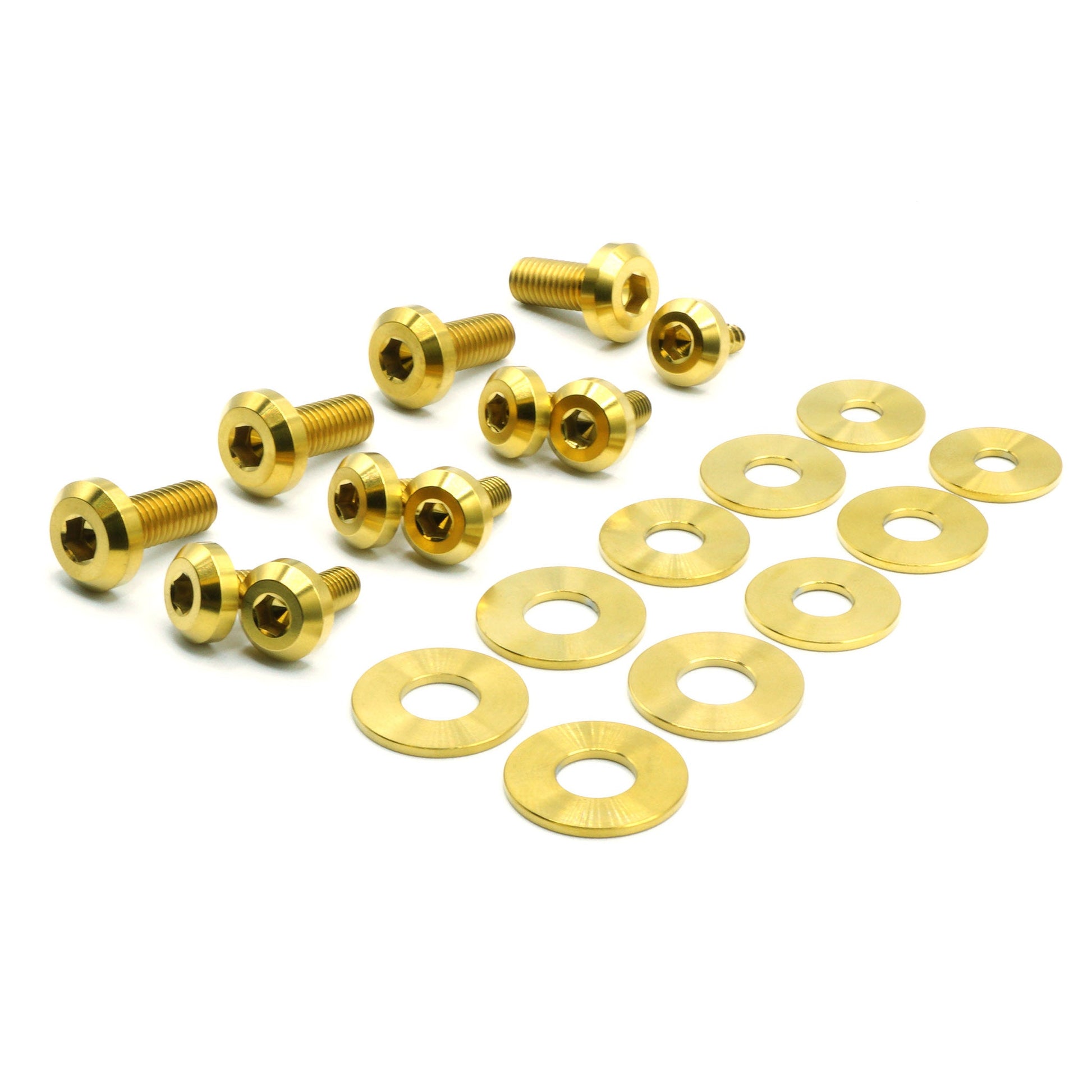 Our 21 piece hood kit includes bolts, screws, and washers manufactured from extremely durable, anticorrosive, and lightweight GR5 titanium metal. The kit is designed for the BMW E46 M3.
