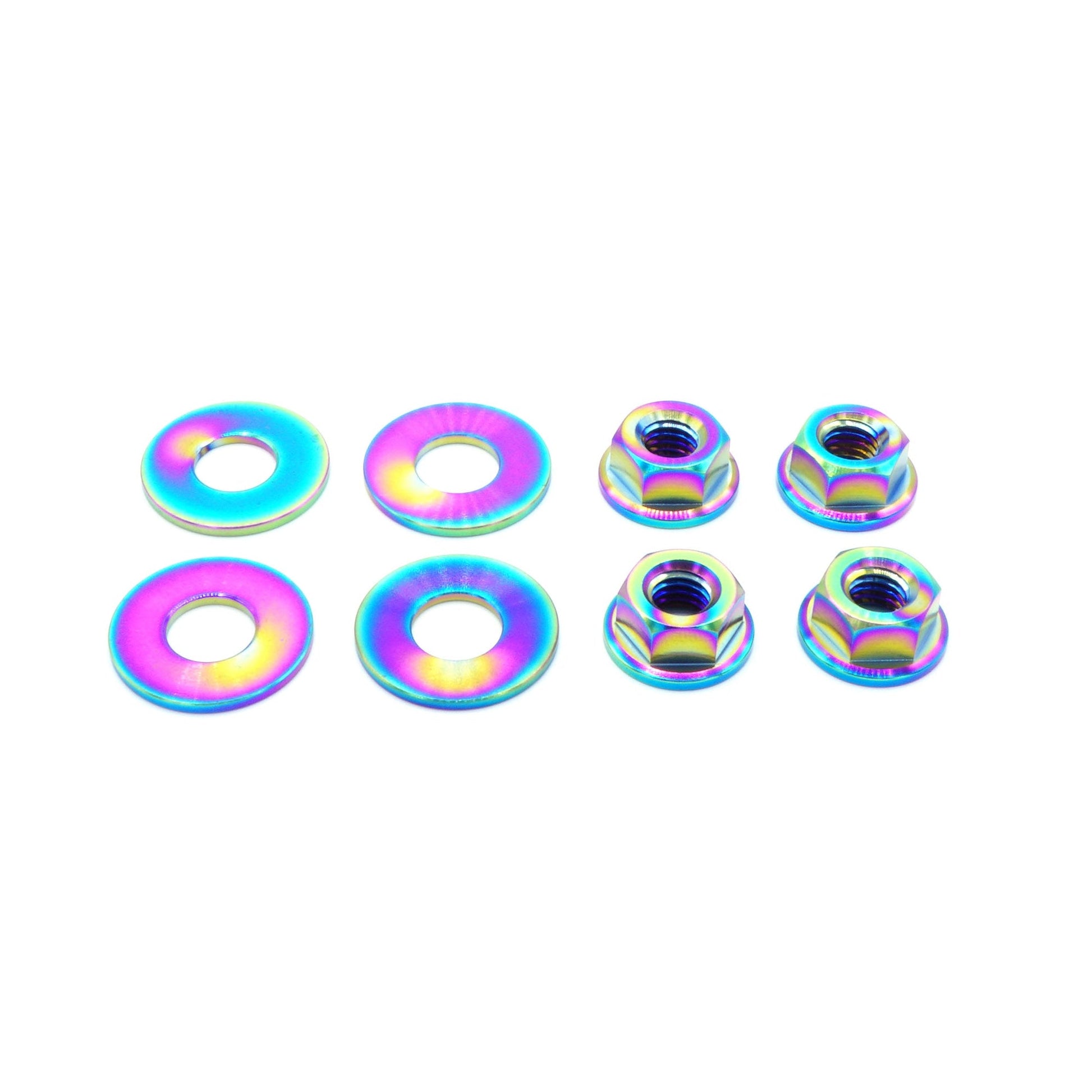 This 8 piece kit includes nuts, and washers manufactured from extremely durable, anticorrosive, and lightweight GR5 titanium metal.