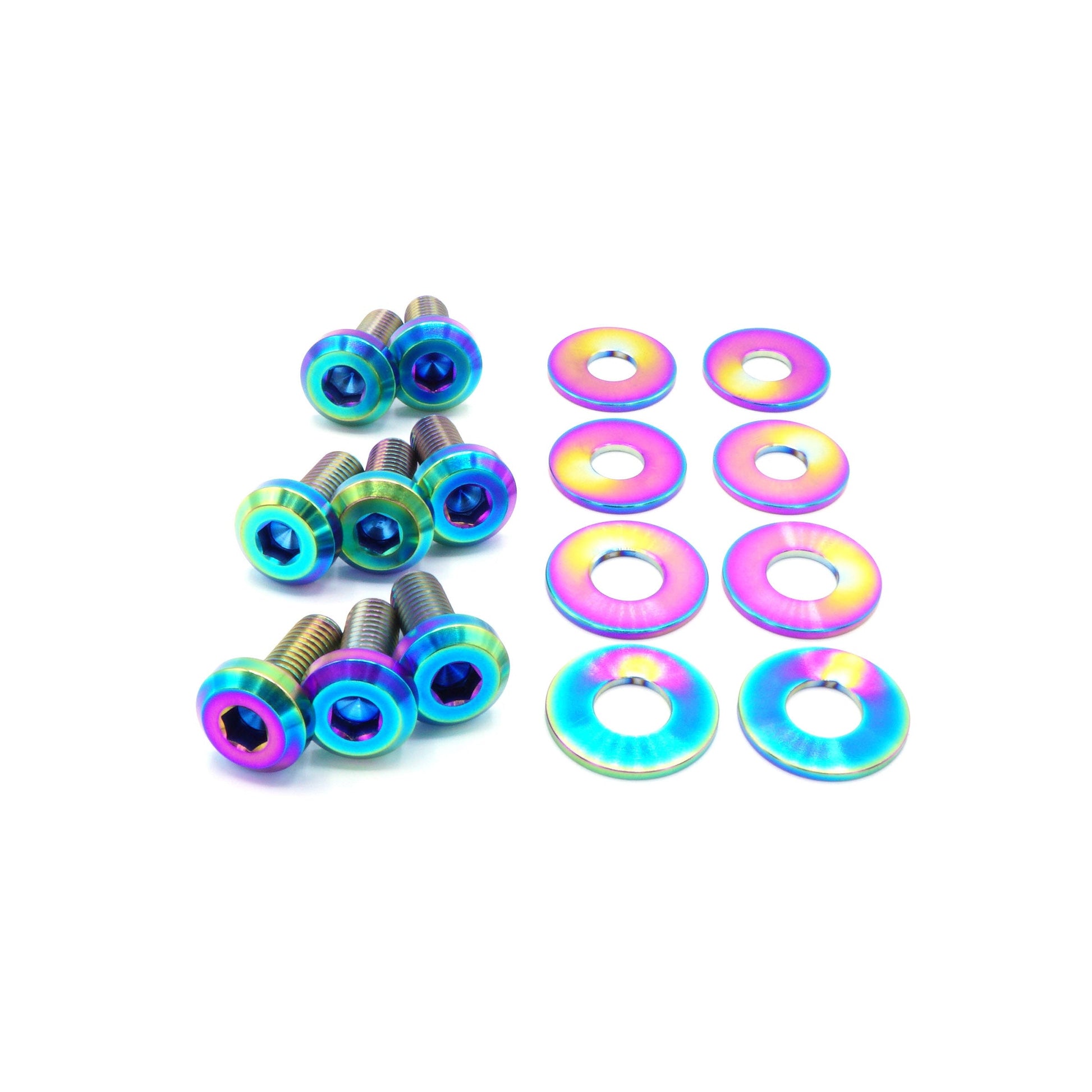 This 16 piece kit includes bolts and washers manufactured from extremely durable, anticorrosive, and lightweight GR5 titanium metal.