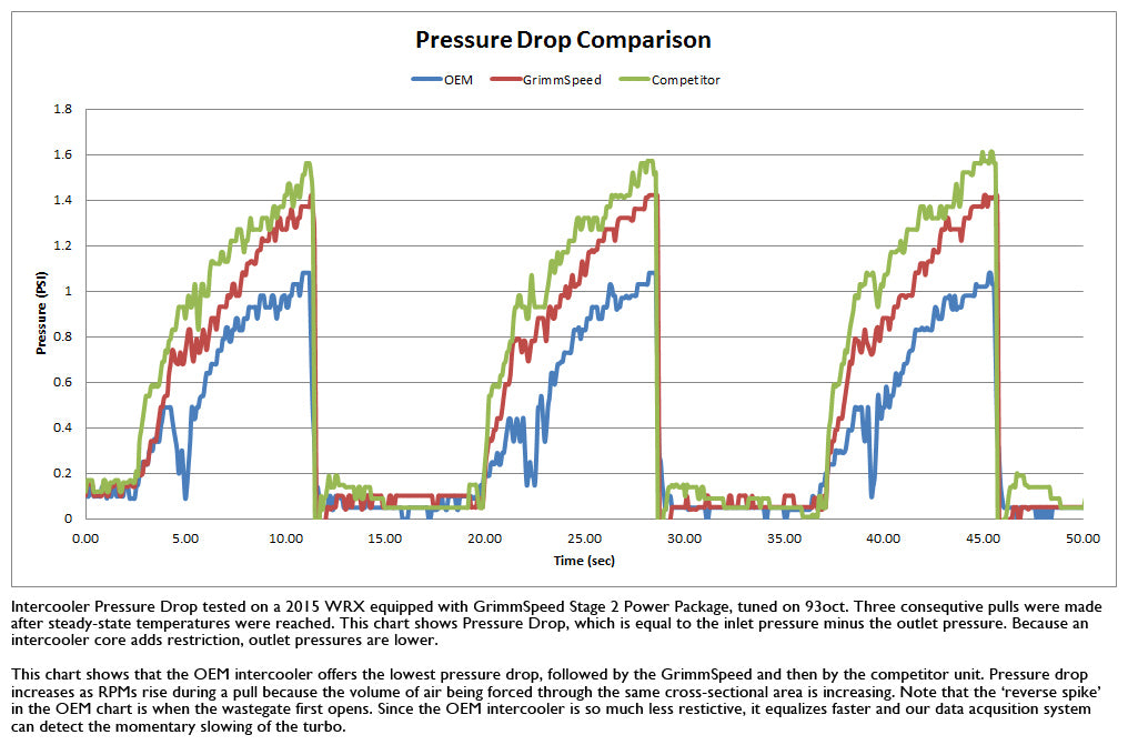 Stainless Steel hardware secures the splitter to the factory hood scoop. Performance We tested the OEM TMIC, GrimmSpeed TMIC and a leading competitor TMIC in a back to back to back comparison and used our multi-sensor data acquisition system to evaluate temperature deltas, intercooler efficiency, pressure drop and more.